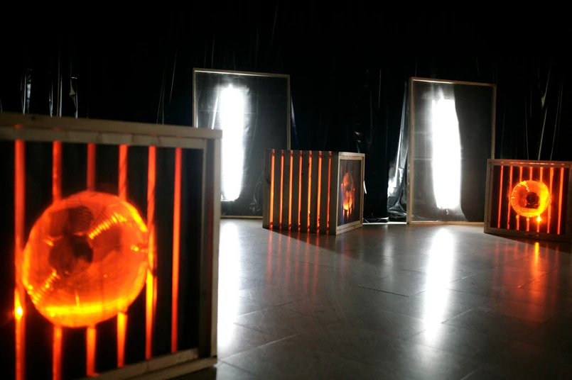 Taka praktyka najdobitniej manifestuje się w pokazanych na "La Clarté Souterraine" wideo. Na niewielkim fragmencie białej, nieosłoniętej folią ściany zapętlone zostały dwa filmy, wykorzystujące skrajnie przeciwne środki. Na lewo oglądamy zapis dość enigmatycznej i przerażającej praktyki. Bezgłowe korpusy wielkich ryb leżą koło siebie w rzędach. Trudno powiedzieć, ile ich jest - kilkanaście, kilkadziesiąt? Ostry szpikulec po kolei odgarnia fragmenty skóry i bada suszące się, różowe mięso. Martwe, zmultiplikowane sylwetki wyglądają odrażająco, ale też fascynują - co to jest? Co to za rytuał? Martwe ciała przypominają egzotyczne przedmioty, niemal gadżety. Tej projekcji nie towarzyszy żaden dźwięk. Tuż obok oglądamy skrajnie przeciwny obraz - spowite mrokiem sylwetki maszyn i przedmiotów. Fragmenty technicznych instalacji ożywiane są podmuchem wiatru, ruchem turbiny, drgającym światłem. Do tego odgłosy fabryki, pokrzykiwania, stukanie, dźwięk syreny. Proste? Tak. I w tym tkwi siła instalacji Markul. Dobitne, niemal dosłowne obrazy wideo wprawione zostały w kontekst mocnego doświadczenia przestrzennego. Widzom, którzy przekraczają próg "La Clarte Souterraine" artystka nie tylko pokazuje rozkład ciała i ruch fabrycznych obiektów, ale też pakuje ich w czarną, połyskliwą formę, wrzuca w mrok rozświetlany jarzeniówką, może nie zrównuje, ale porównuje z przedmiotem.
