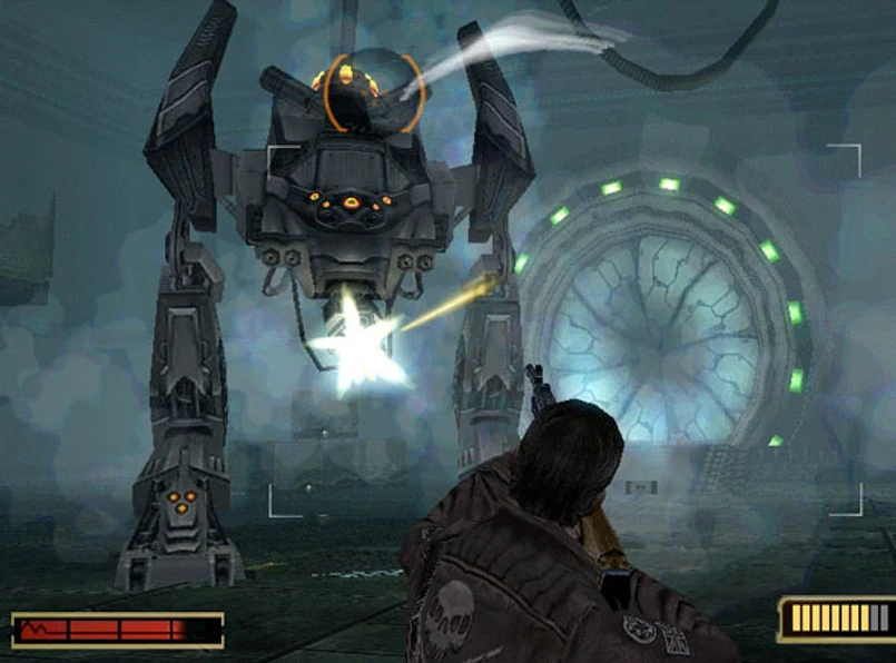 Wystarczy jednak wdać się w pierwszą strzelaninę, by odnieść wrażenie, że ktoś złośliwie utrudnił sterowanie. Podczas gdy lewy (jedyny) manipulator analogowy odpowiada za marsz postacią i przydatne kroki na boki, już aby obracać widok i celować, trzeba używać czterech prawych klawiszy z symbolami, które nie nadają się do ciągłych, precyzyjnych korekt kierunku. To wina braku wspomnianego, lewego manipulatora, w żadnym wypadku twórców gry. Ci zrobili, co mogli w zastanych okolicznościach, przenosząc sterowanie z kieszonkowych edycji „Syphon Filter” i próbując zamortyzować nam niewygodę. Dodali automatyczne namierzanie celów, co trywializuje rozgrywkę, ale czyni ją znośną (co prawda już na początku gry pojawiają się maszkary, które trzeba ręcznie trafiać w wybuchowe głowy). Dorzucili chowanie się za osłonami, a resztę ruchów upchnęli pod jednym, kontekstowym przyciskiem. Umieścili na drodze gracza różnorodną broń z pomocnymi funkcjami dodatkowymi. Dodali nawet opcję połączenia PSP z PS3 (dla posiadaczy gry „Resistance 2”), by desperaci mogli pograć „dużym” kontrolerem – ale to rozwiązanie przeczy przenośności konsolki. Ja nadal czekam na ten drugi manipulator i pierwszą grę celownikową na PSP, która go wykorzysta.