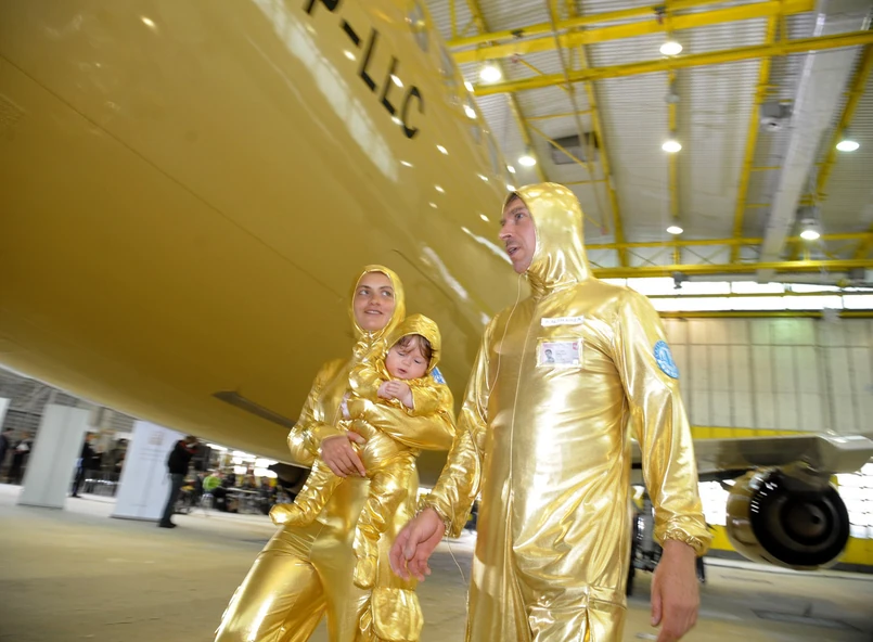 Na pętli zbiera się 150 osób. Są wśród nas sąsiedzi Althamera i weterani "Bródna 2000", są osoby chore na stwardnienie rozsiane, z którymi artysta pracuje w ognisku twórczym, są emeryci, dziennikarze, jeden zabłąkany Australijczyk i dzieciaki z podstawówki, a nawet niemowlęta ubrane w złote śpioszki i jeżdżące w złotych wózkach. Dwa z nich należą do samego Althamera, który zabiera na wyprawę dwoje swoich najmłodszych dzieci. Jesteśmy przysłowiowym przekrojem społecznym, ale kosmiczne kombinezony jednoczą nas, zmieniając w Wyprawę. Kiedy idzie się samemu w złocistym skafandrze przez uśpione miasto, jest się odmieńcem i kosmitą. W grupie zaczynamy się czuć uczestnikami wspólnej sprawy. Co nią jest? Tego jeszcze nie jesteśmy pewni, ale wiemy, że na Okęciu czeka na nas złoty boeing 737.