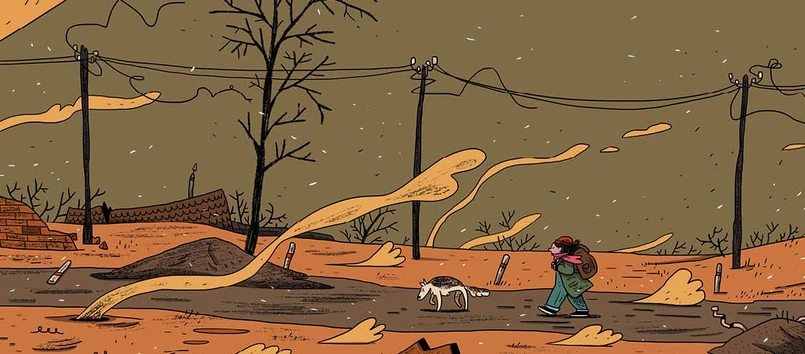 Ale jest w „Bajce na końcu świata” również coś, co przemawia do starszych czytelników, nawet tych, którzy – tak jak ja – przestali być docelowymi odbiorcami tego komiksu mniej więcej w czasach, gdy jego autor dopiero przychodził na świat. „Bajka...” podszyta jest ledwo uchwytnym niepokojem, nostalgią właściwą choćby powieściom i komiksom o Muminkach. To wcale nie musi przerażać dziecięcych czytelników, lecz już ich rodzicom da sporo do myślenia. Wszak poszukiwania Wiktorii oparte są na mało konkretnych przesłankach (bohaterowie podążają za migoczącym światłem na niebie, bo wierzą, że to sygnał wysyłany przez mamę i tatę), entuzjazm dziewczynki bywa gaszony przez chwile wątpliwości, a wyobraźnia dorosłego czytelnika – przefiltrowana przez filmowe i literackie doświadczenia – podpowiada niekoniecznie szczęśliwe zakończenia. W „Bajce...” można znaleźć nieoczekiwane kulturowe tropy – z powieścią Harlana Ellisona „Chłopiec i jego pies” na czele (na marginesie: czy tylko mi wizyta Wiktorii w ostatnim ogrodzie nasunęła dalekie skojarzenia z „Antresolką Profesorka Nerwosolka” i sceną, w której bohaterowie wpływają na Morze Sargassowe?) – ale gdzieś w podświadomości czają się demony z ponurych wizji przyszłości z „Mad Maxa”, „Drogi”, gry „The Last of Us”.