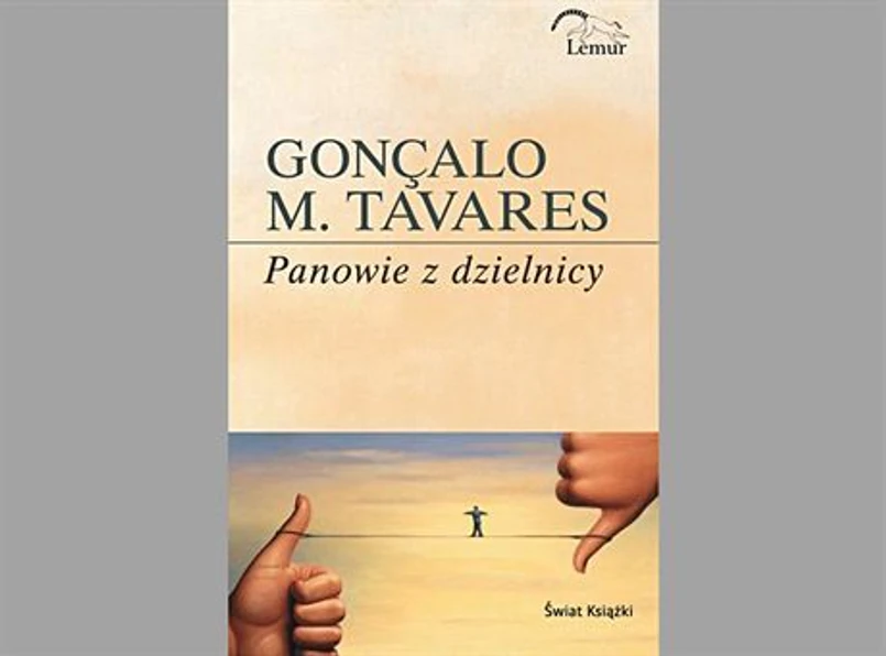 Polski wydawca opatrzył książkę Tavaresa znakomitą okładką. Między dwoma kciukami, z których jeden kieruje się w górę, drugi zaś w przeciwnym kierunku, rozpięta jest lina. Na niej balansuje mały człowieczek. To właśnie o tym traktują "Panowie z dzielnicy", o konieczności odnalezienia równowagi między tym, co w nas śmieszne i tym, co doniosłe. Szukając jej, musimy z autorem balansować na granicy absurdu. To stąd najbliżej do prawdy o nas i o świecie.