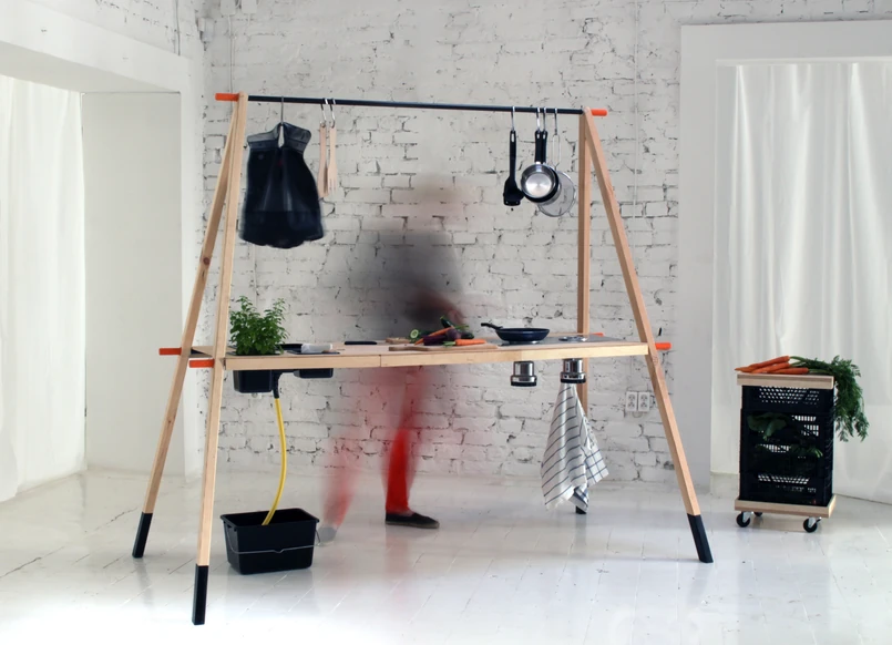 KUCHNIA ZERO to projekt mobilnej, modułowej kuchni/stoiska stworzony z myślą o imprezach plenerowych związanych z jedzeniem. Dzięki wymiennym blatom może być spersonalizowane w zależności od potrzeb użytkownika. Po złożeniu zajmuje mało miejsca i jest łatwe w transporcie.
