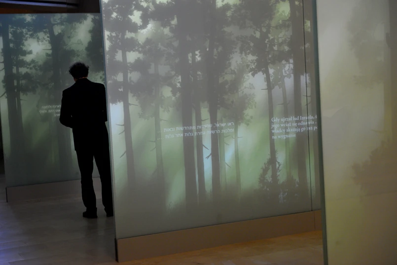 Magdalena Skrętkowicz z muzeum podkreśla, że galeria "Las" jest przestrzenią, przygotowującą zwiedzających przed wejściem do kolejnych siedmiu galerii.