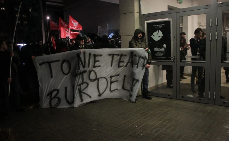 Protest przed teatrem zapowiedziała Młodzież Wszechpolska, zapraszając działaczy Ruchu Narodowego i Obozu Narodowo-Radykalnego. W piątek Teatr Powszechny w Warszawie wznowił wystawienie spektaklu "Klątwa" Olivera Frljicia. Tego dnia wszechpolacy poprosili o interwencję Prokuratora Generalnego oraz Ministerstwo Kultury i Dziedzictwa Narodowego, władze stolicy i dyrekcję teatru. Domagali się "zniesienia" spektaklu, których ich zdaniem obraża wartości chrześcijańskie i polskie tradycje.