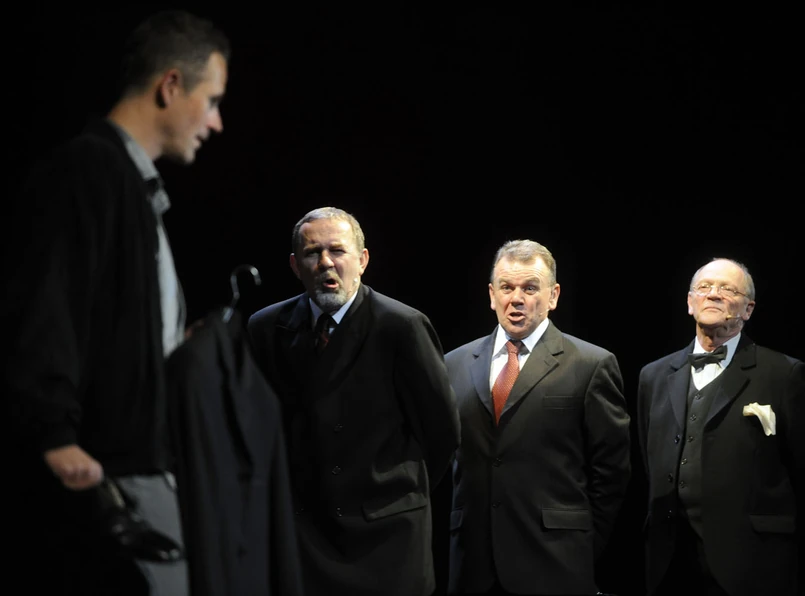 Warto wyjść także poza żelazny kanon dürrenmattianów. Nie tylko „Wizyta starszej pani” jest odbiciem tego, co wokół nas. W niesłusznie zapomnianych „Anabaptystach” dobry interpretator znajdzie materiał na opowieść o posługiwaniu się religią dla najpaskudniejszych celów, w czym celują zwłaszcza ci „najświętsi”. „Fizycy” – dziś, gdy świat znów zaczyna przegradzać żelazna kurtyna, a „zbójeckie państwa” szykują własne bomby atomowe, wydają się napisani na ten trudny czas. Zapomniany przez teatr „Anioł zstąpił do Babilonu” jest świetnym, szekspirowskim niemal traktatem o władzy, a także i tym, że owa władza odbiera człowieczeństwo, obdarzeni nią przestają być ludźmi i w gruncie rzeczy ich los jest gorszy niż niewolników. Tylko kto dziś wystawi te dramaty o skomplikowanej fakturze, mieszającej prozę i wiersz, kto zaaranżuje dziś sceny zbiorowe? Jeśli jednak nie reflektują państwo na dzieła ogromnych rozmiarów – może warto przeczytać i zaadaptować radiowe miniatury Dürrenmatta? Kameralne sceny teatrów aż proszą się o „Nocną rozmowę z człowiekiem którym się gardzi”, materiał na dwie wielkie role w rozmowie oprawcy i jego ofiary. Być może pomyśleć jak z radiowego „Procesu o cień osła” wykroić na scenę zjadliwą farsę o walce stronnictw politycznych drących się między sobą o najmniejsze bzdury. Zawsze można liczyć, że na szczytach władzy znów ktoś śmiertelnie się obrazi. Nic lepszego teatrowi zdarzyć się nie może. Sezony Dürrenmatta przed nami? Aż się raduje serce...